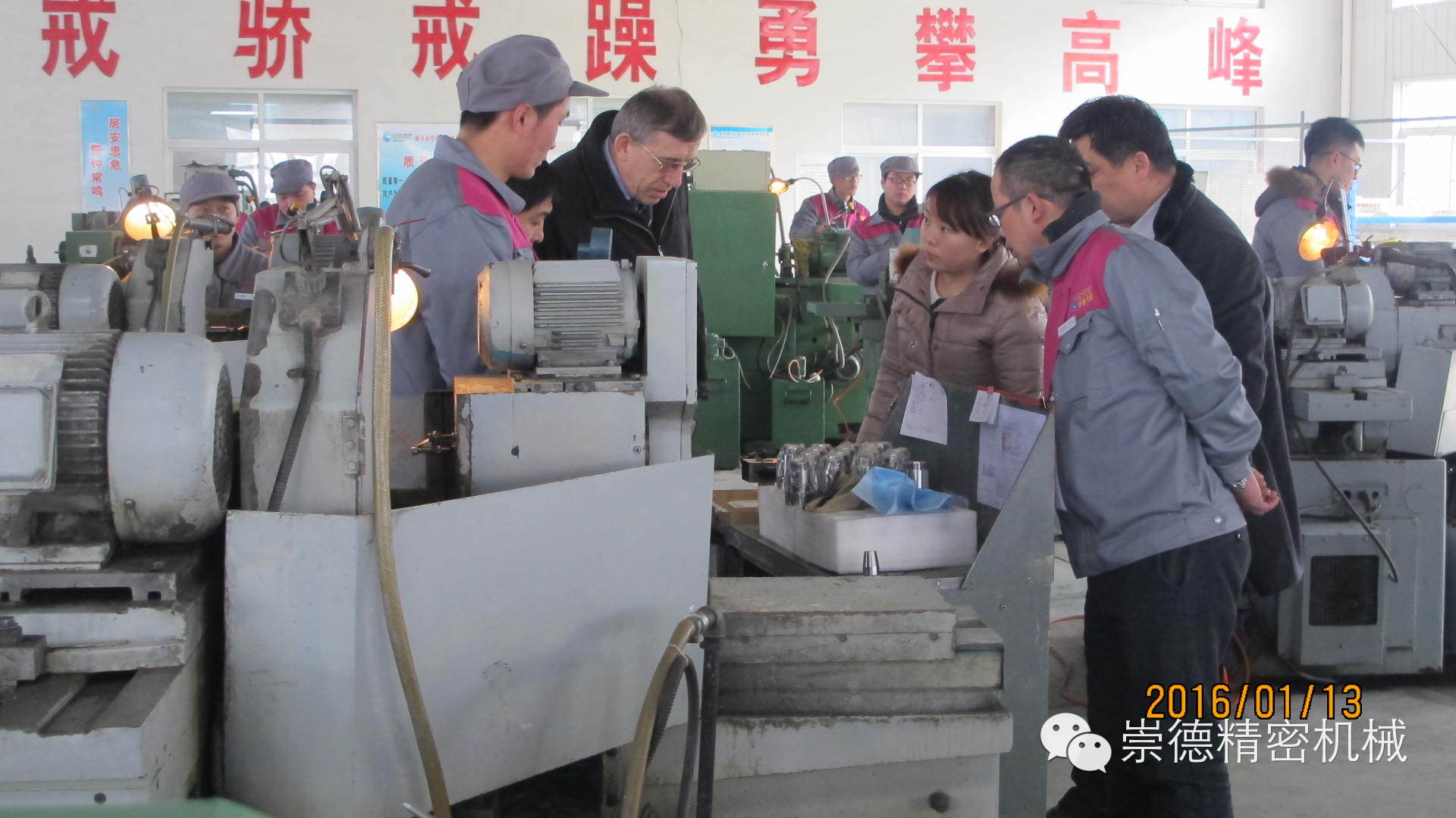 1.13日上午十點,俄羅斯客戶應(yīng)約抵達崇德。總經(jīng)理帶領(lǐng)崇德高管熱情迎接,還沒等緩解一路的車馬勞頓,我們這位外國友人就迫不及待的想要參觀一下崇德公司。他說他想認真看看崇德產(chǎn)品,在意大利展會上他對我們的產(chǎn)品非常滿意。