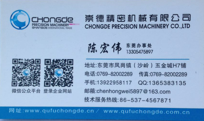 這張名片你有沒有很熟悉?是的,今天小編隆重為大家介紹的是崇德機械--東莞鳳崗鎮(zhèn)辦事處,看陳老板如何在東莞鳳崗叱咤風(fēng)云。