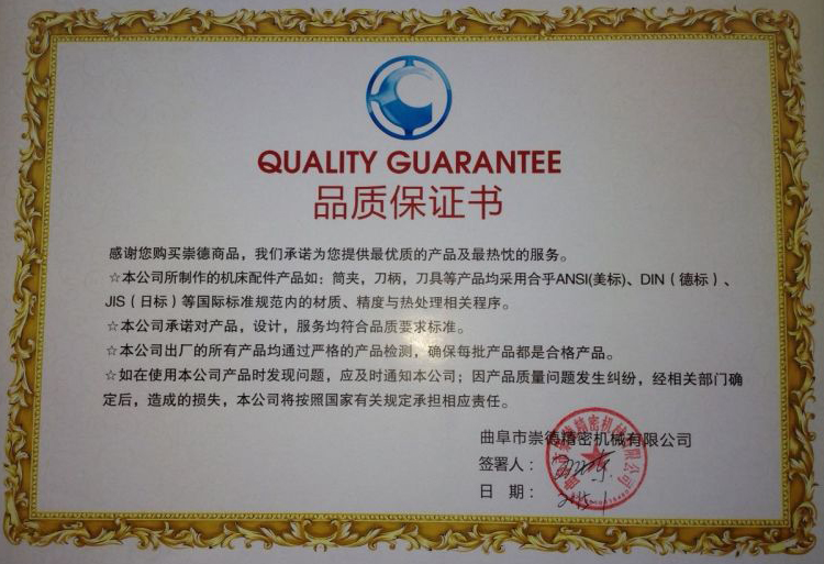 之所以我們崇德公司有如此高的好評,除了我們有過硬的品質(zhì)保證外,更重要的是崇德公司的售后服務(wù)工作做的好。我們陳老板鄭重承諾:凡東莞鳳崗鎮(zhèn)附近有需要的客戶,你只要一個電話,我保證30分鐘內(nèi)趕到。這也是我們公司在中國的多個片區(qū)就會設(shè)立辦事處的重要原因--崇德讓每位刀具使用者安心,放心,舒心。